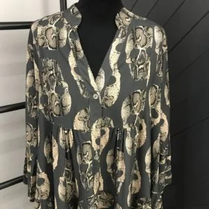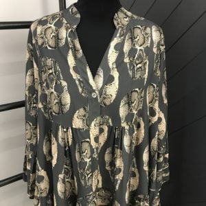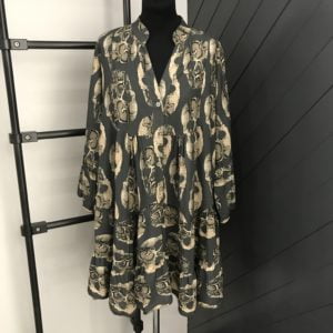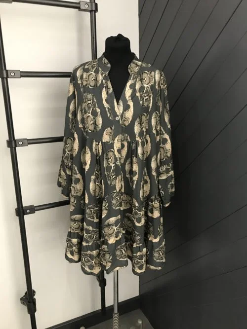 When the tiered dress first arrived at limited boutique, we couldn’t help but swoon, this over sized style has long sleeves and button front fastening and a skull print. Wear with trainers for a casual look and boots and jewellery to elevate the style.